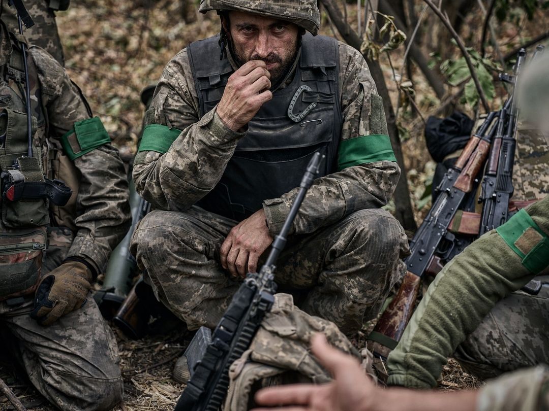 Також у фоторепортажі є світлина з піхотинцями, які щойно вийшли з позицій в районі Новогродівки Покровського району Донецької області.