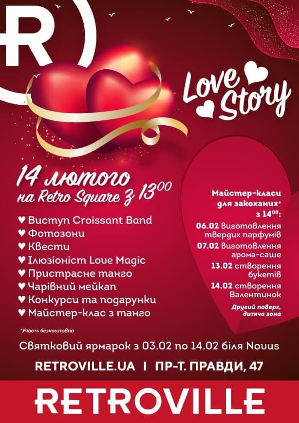 У ТРЦ Retroville кожен бажаючий зможе знайти найкращі подарунки для другої половинки за найліпшими цінами, а також там запланована програма до Дня закоханих.