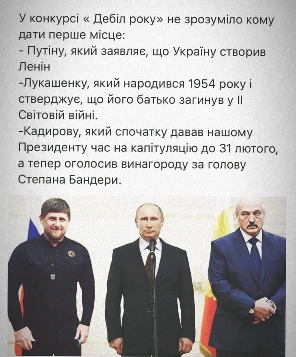 В українців не зникає почуття гумору навіть під час війни. Трійку лідерів Росії, Чечні та Білорусі, які виступають за нищення України, висміяли користувачі соцмереж.