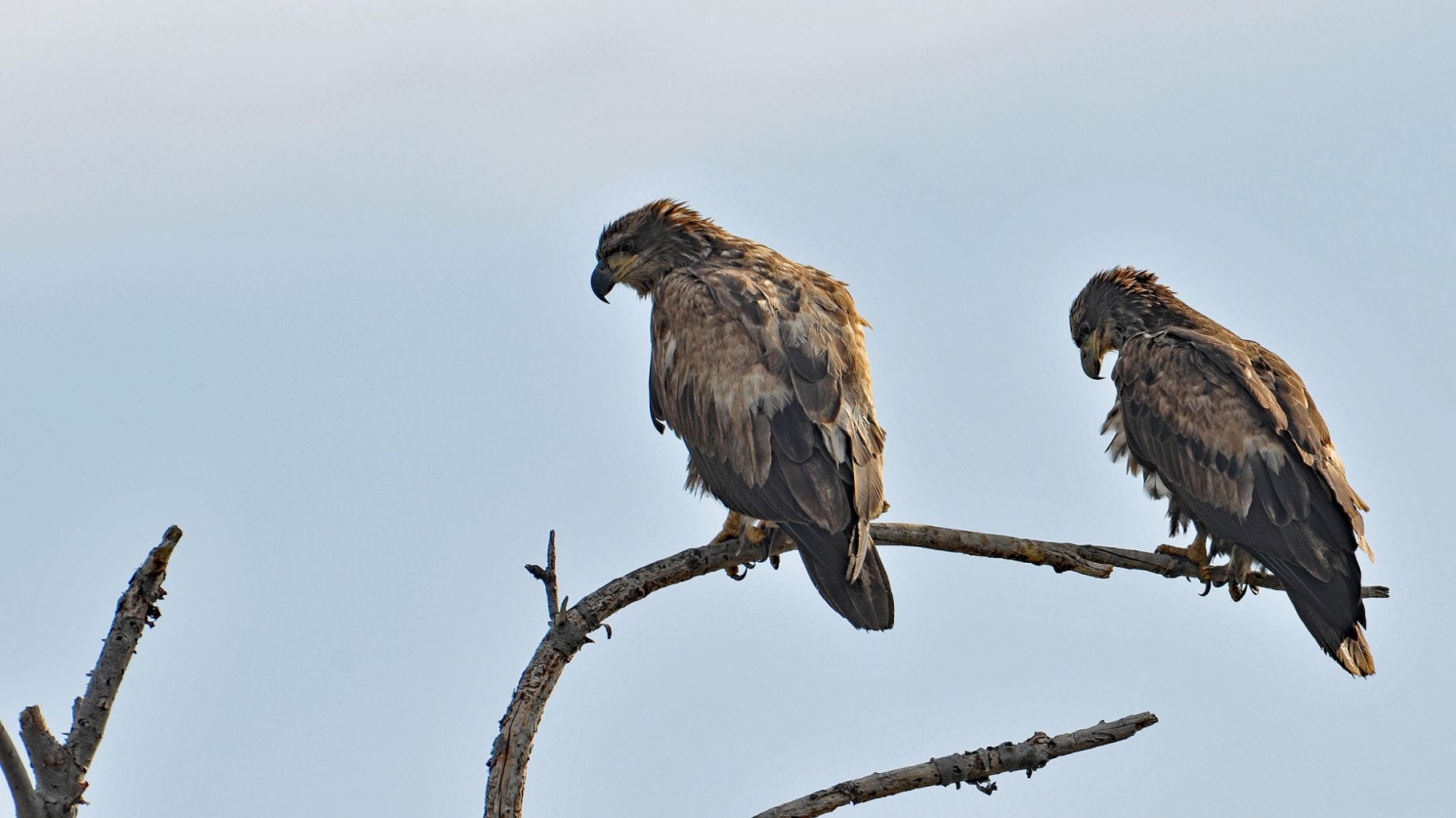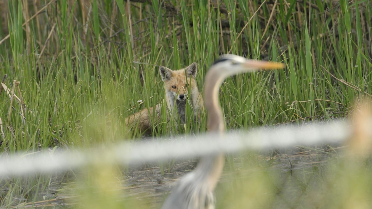Незвичайна подія привернула багато уваги серед місцевих хижаків, кілька орлів та лисиця йшли за чаплею, можливо, сподіваючись забрати їжу.