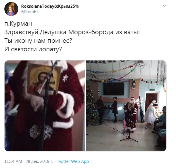 "Мишка прибігла-хвостиком махнула ... новорічне", "Здрастуй, Дідусь Мороз-борода з вати! Ти ікону нам приніс? І святості лопату?" - коментують в мережі фото.