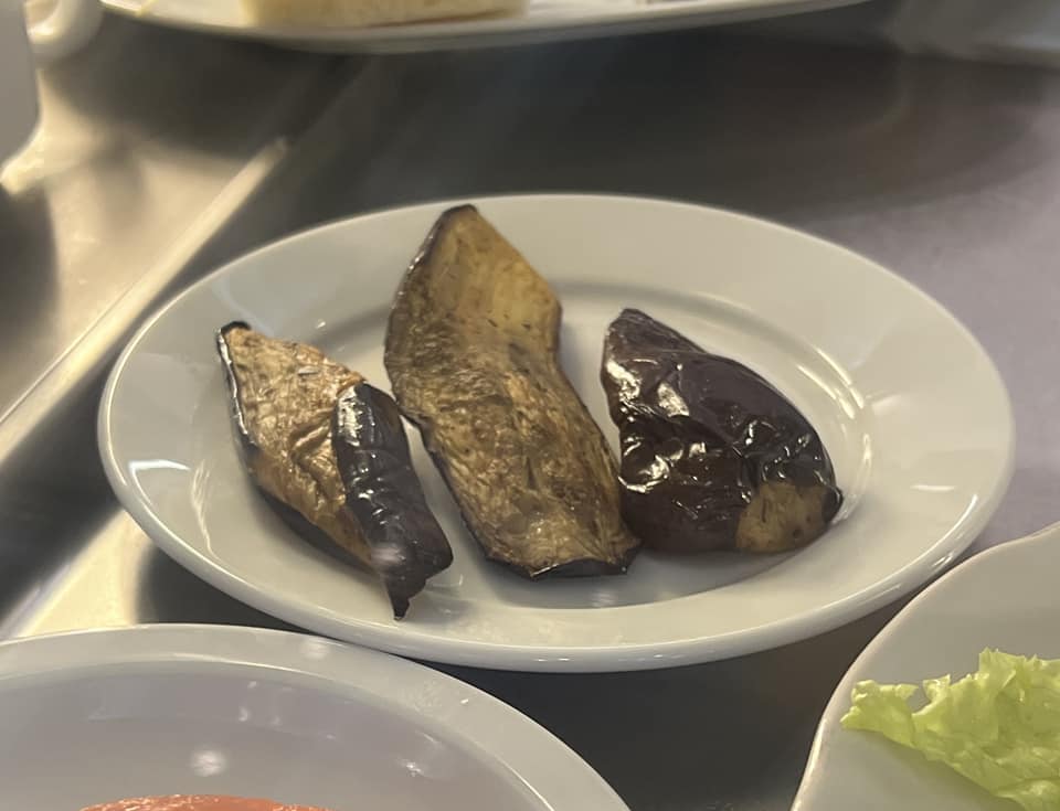 Також Сюмар продемонструвала, як виглядають баклажани з меню. На тарілці три підсохлі баклажани без будь-яких добавок. Депутат зазначила, що їй було б цікаво дізнатися про постачальника продукції.