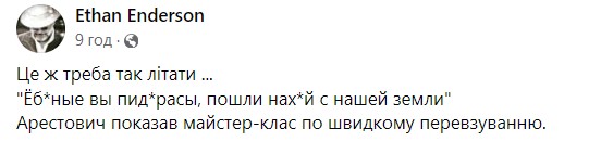 "Ми вас на *ую вертіли. Коли я пропонував перемир'я, я пропонував його тільки для того, щоб зробити Україну більш ефективною, щоб протистояти мудакам, які назавжди наші вороги... Ми можемо жити з росіянами в мирі, але після того, як ми вам насуємо, після того, як росіяни почнуть жахом захлинатись, коли вони згадують Україну. Я точно постараюсь, щоб це відбулось, бо я давав присягу служити українському народу, не жалівши сил, а сил у мене купа", - заявив Арестович.