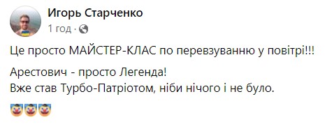 "У тіпа біполярка тупо прокачана на 100%", "Ніс за вітром тримає - як флюгер", "Коли відкрив методичку на не тій сторінці", "Льоша Арестович знову став на бік України. Ось що робить контроль ВСУ над краником Газпрому!", - пишуть у соцмережах.