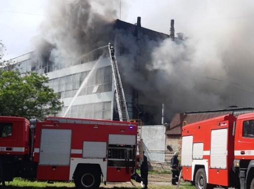 У будівлі взуттєвої фабрики горіли гумові вироби на третьому поверсі виробничого цеху підприємства.