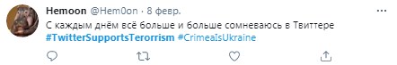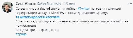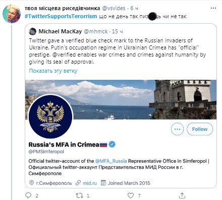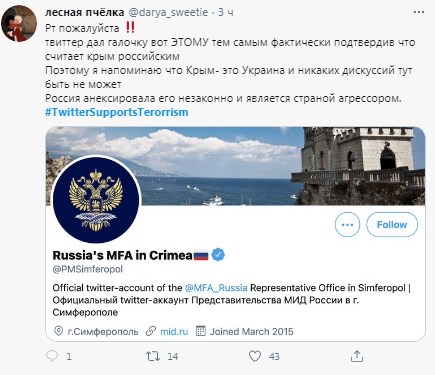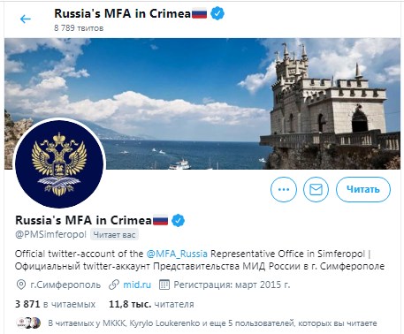 У соціальній мережі Twitter визнали офіційним аккаунт МЗС РФ в анексованому Криму.