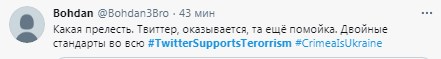 Користувачів мережі українського сегмента обурила така новина. Ситуацію вони прокоментували в Twitter під хештегом #TwitterSupportsTerorrism.