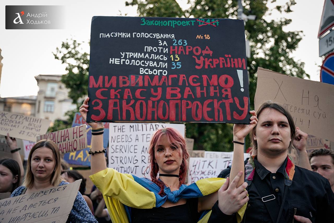 Вперше люди вийшли на акцію протесту увечері 22 липня, після ухвалення у цілому Верховною Радою закону №12414 зі змінами до Кримінального процесуального кодексу, згідно з якими НАБУ та САП стануть залежними від рішень генпрокурора. Українці вимагали ветувати закон, однак того ж вечора президент Володимир Зеленський підписав документ.