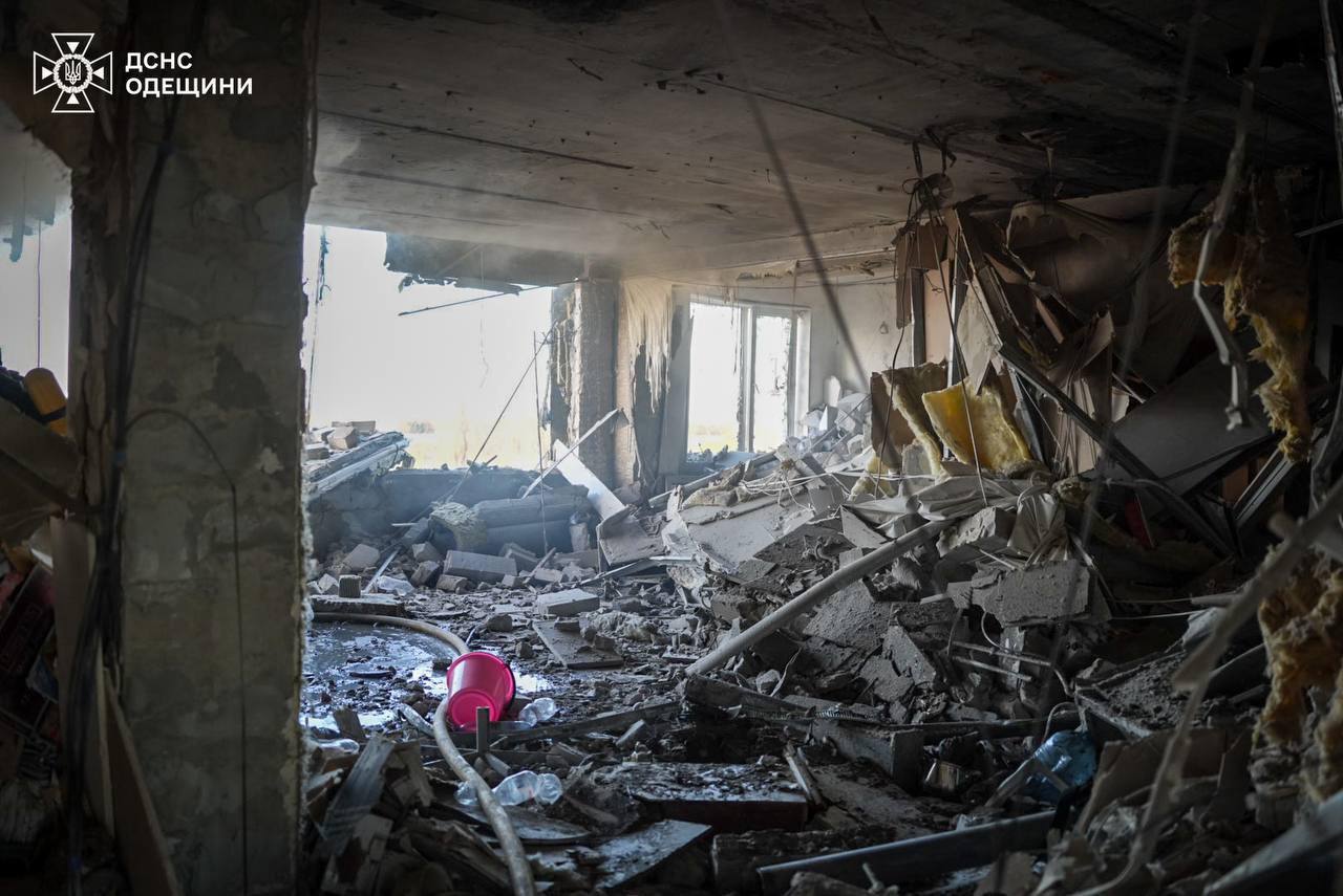 У Хаджибейському районі Одеси через влучання дрона у дев'ятиповерховий житловий будинок пошкоджено три квартири, ще одну зруйновано повністю з подальшим загорянням.