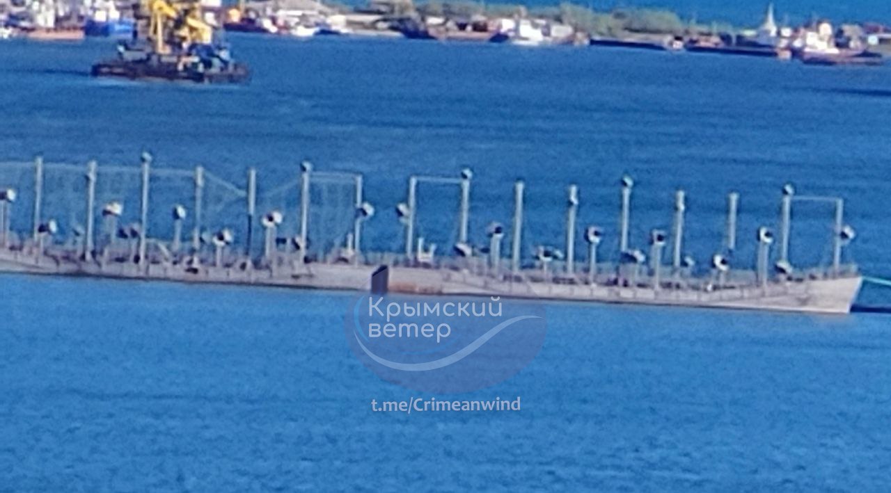 У "Кримському вітрі" нагадали, що бухту заводу охороняє річковий артилерійський катер. У січні окупанти перекрили баржами бухту для захисту від морських дронів.