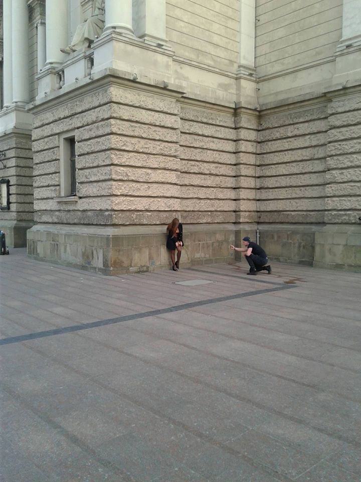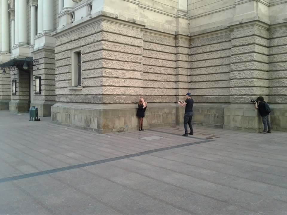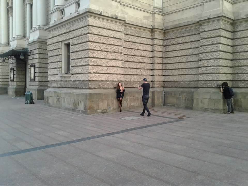Зробивши серію знімків біля Львівського оперного театру, фотографи і модель перемістилися в інше місце.