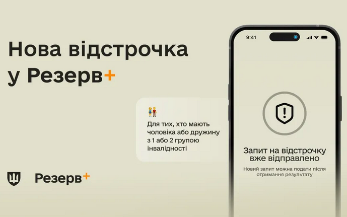 У застосунку "Резерв+" додали нову відстрочку від мобілізації. Вона передбачена для подружжя, де хтось із них має інвалідність першої або другої групи.