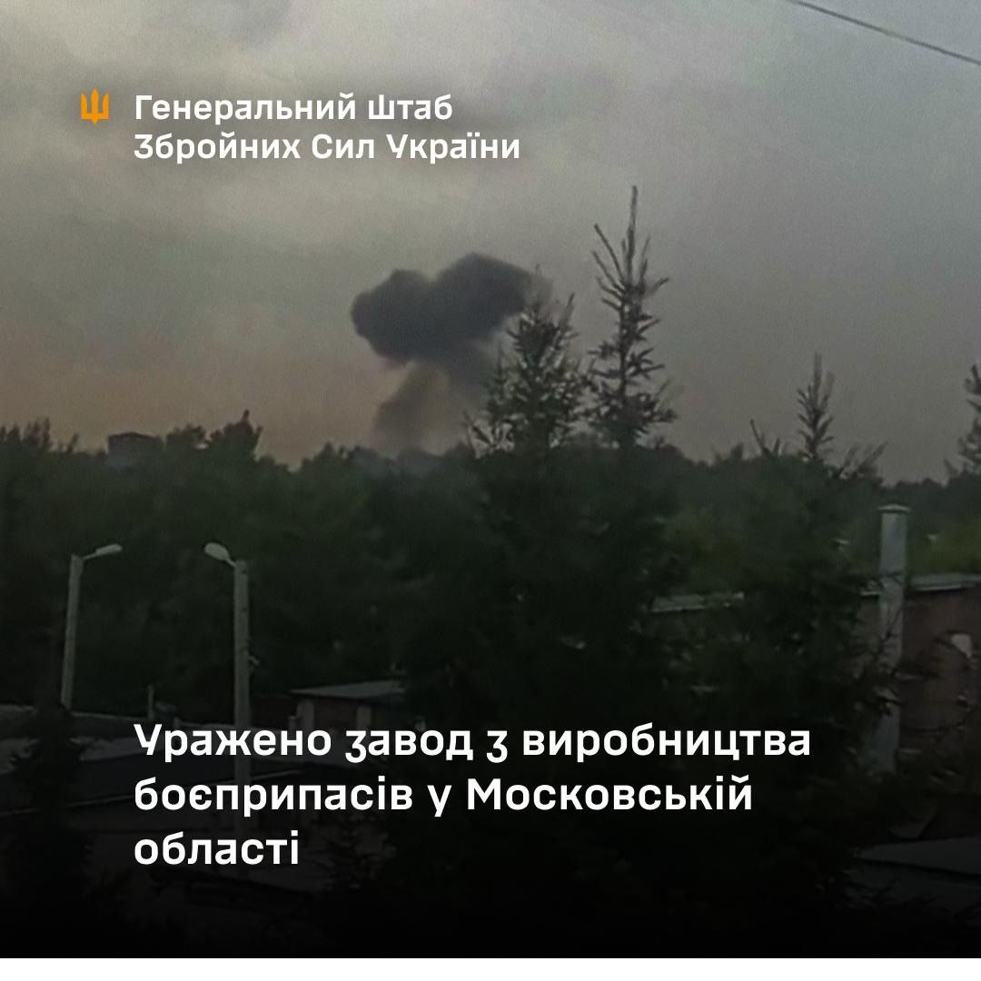 У Генеральному штабі Збройних Сил України підтвердили ураження об'єкта оборонної промисловості у Московській області РФ у ніч проти 7 липня 2025 року. Йдеться про АТ "Краснозаводський хімічний завод".