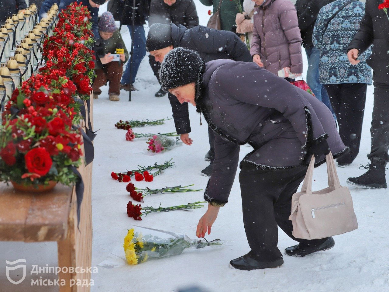 У неділю, 14 січня, у Дніпрі вшанували пам'ять загиблих від російської ракети в багатоповерховому будинку на Набережній Перемоги, 118. Рік тому тут російська ракета вбила 46 і поранила 80 людей.