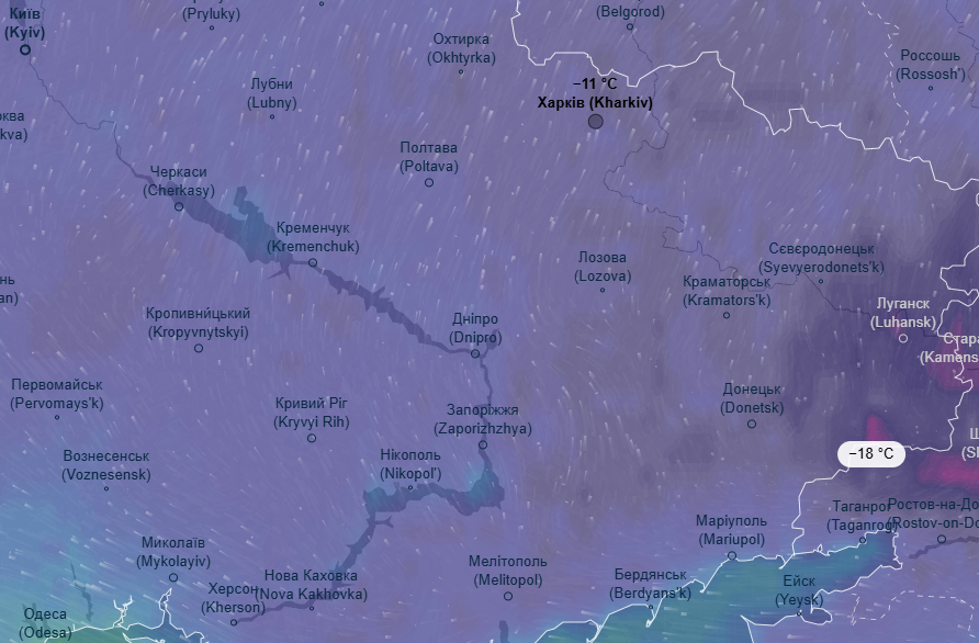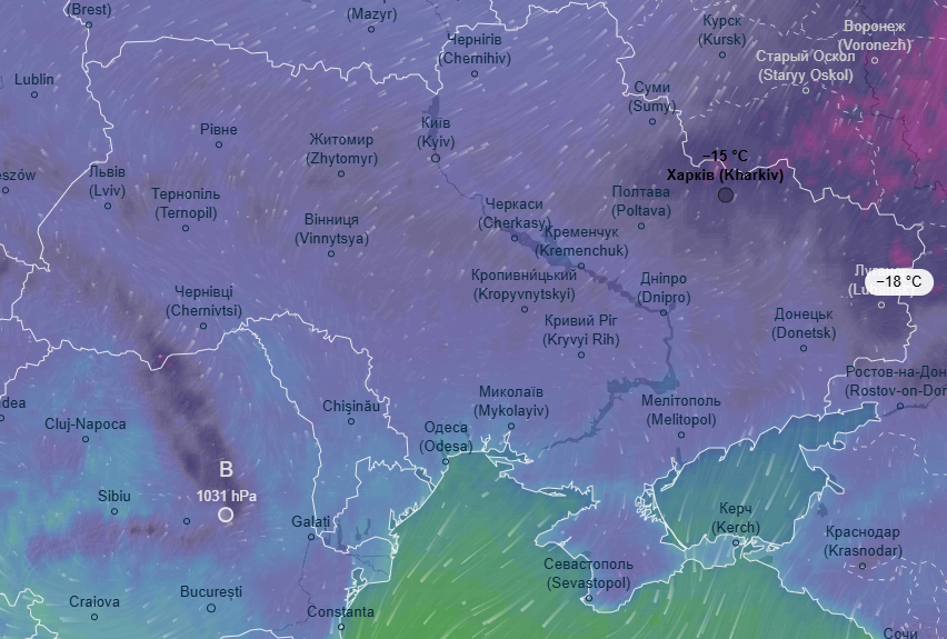 Вівторок, 18 лютого, принесе зниження температури на всій території України - очікується від -9 до -12 градусів. Найсильніші морози вдарять на Харківщині та на Луганщині, де синоптики знову прогнозують від -15 до -18 градусів.