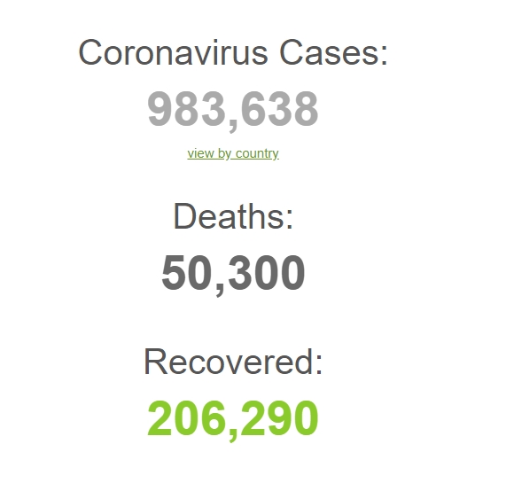Всього коронавірусом заразилося 983,638 осіб. Одужали 206,290 хворих COVID-19.