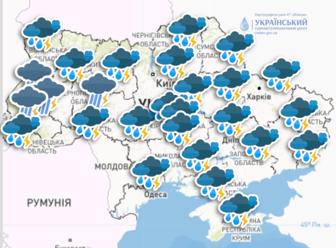У неділю, 11 червня, в Україні, не дивлячись на прогнози червневої спеки, прогнозують дощі, грози або град. Пориви вітру можуть досягати 15 – 20 метрів за секунду