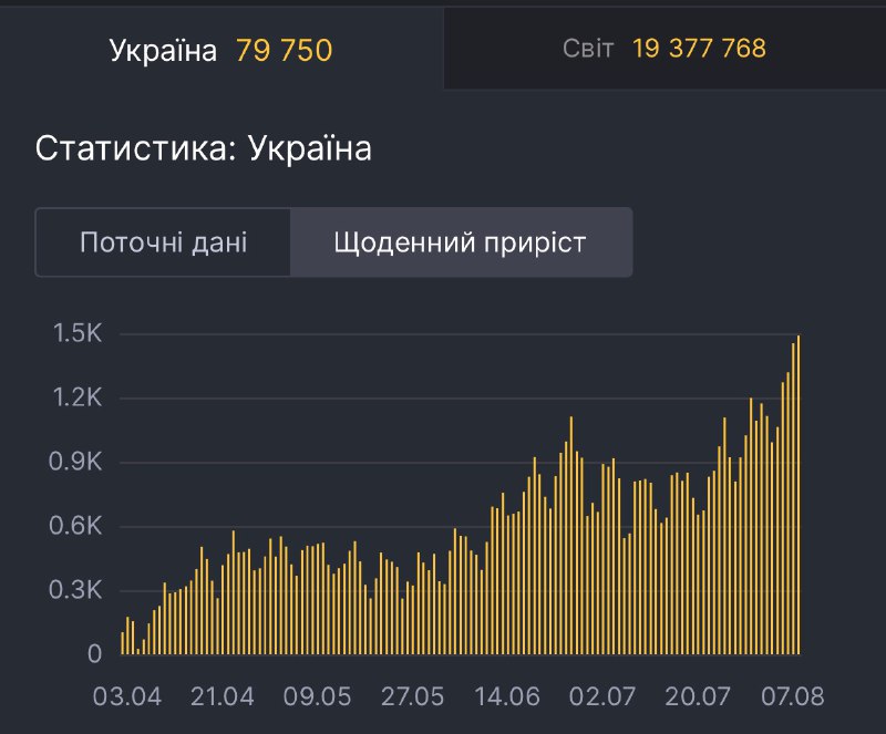 Станом на 8 серпня в Україні зафіксовано новий антирекорд хворих на коронавірус.