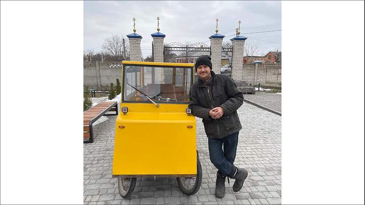 Народний умілець з Олександрії, що в Кіровоградській області, змайстрував електромобіль і вже близько року роз'їжджає ним вулицями міста.