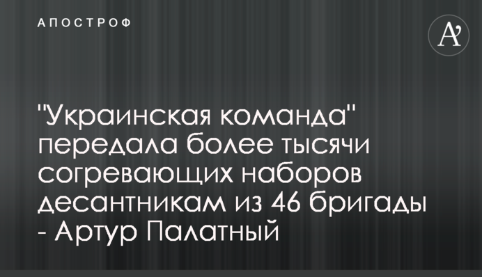 "Передали понад тисячу зігріваючих наборів 46 аеромобільній бригаді Десантно-штурмових військ. Це наші герої-штурмовики, які звільняли від окупантів правобережну Херсонщину, били росіян у Бахмуті та Соледарі, на Мелітопольському напрямку, а зараз тримають Мар"їнку", - заявив Артур Палатний.