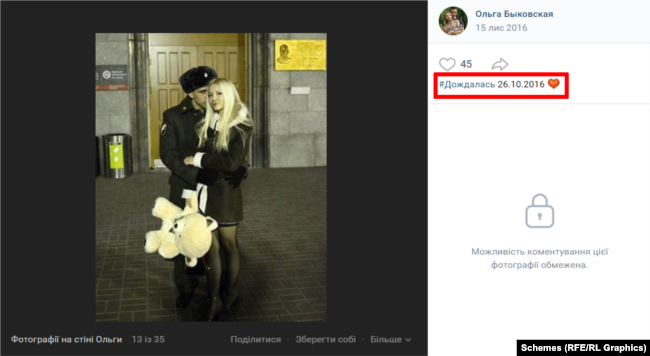 Окрім цього, журналісти знайшли оголошення, згідно з якими вона шукала роботу по догляду за дітьми. У соціальних мережах Ольга Бикова намагається показати з себе зразкову дружину, що чекає свого чоловіка зі служби, фотографується біля пам'ятника закоханих, закликає збирати грошову допомогу на операцію збитій на дорожі собакі. Однак, її справжнє обличчя проявилось у цинічному закликі до зґвалтування українських жінок.