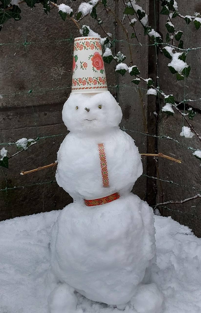 Ще один незвичайний сніговик з'явився у Боярці під Києвом. Дитина стилізувала свій "шедевр" під українську вишиванку, додавши сніговику-патріоту національний орнамент.