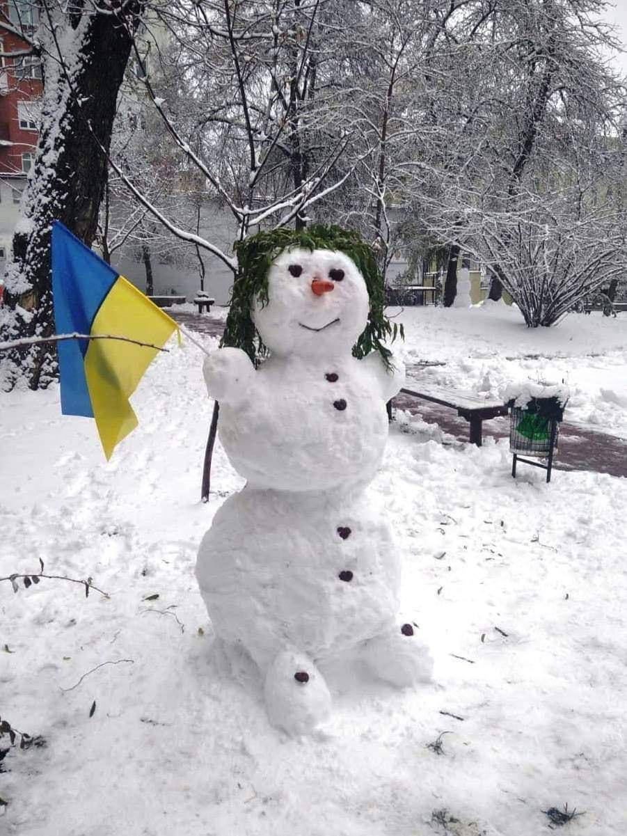У Харкові, наприклад, з'явився сніговик, присвячений Збройним силам України. Автори зліпили зі снігу напис "ЗСУ".