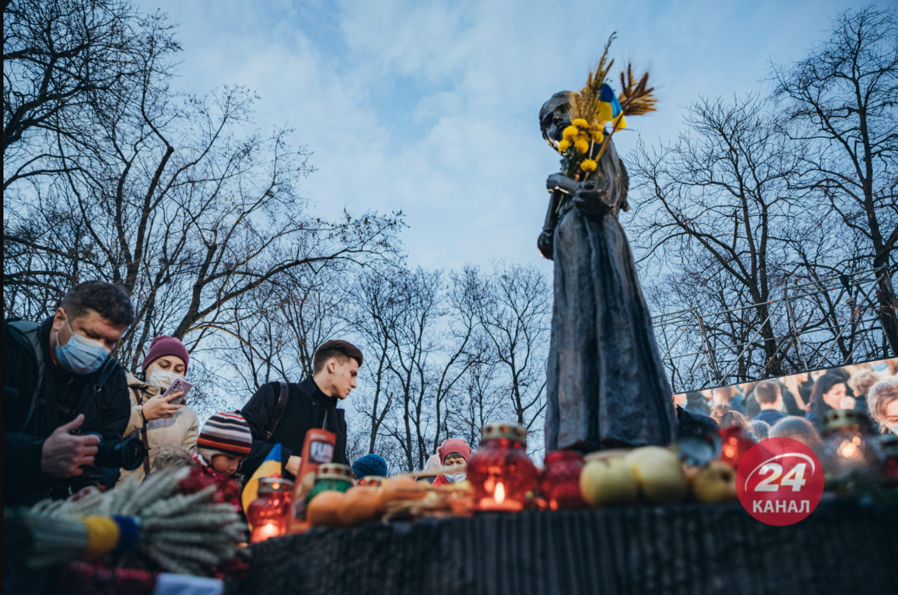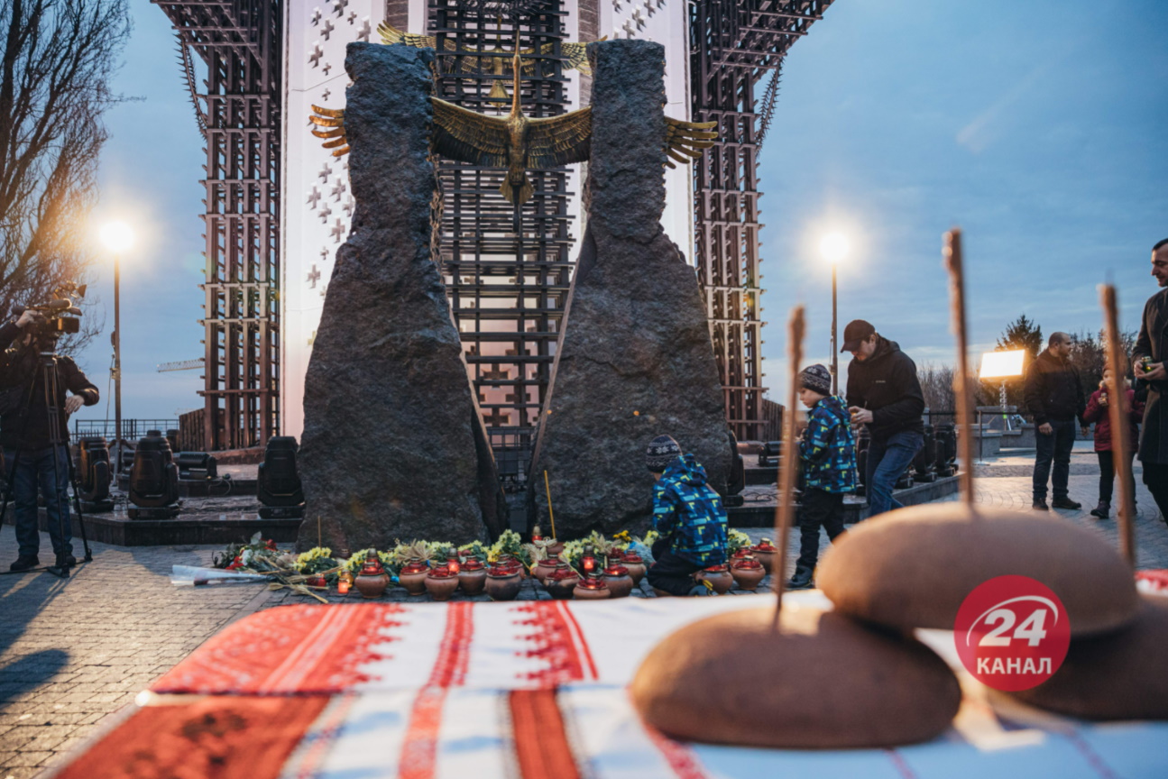У Києві люди завітали на територію Національного музею "Меморіал пам'яті жертв голодоморів в Україні". Туди прийшли тисячі українців – дорослих та дітей: із собою люди принесли запалені лампадки, квіти, колоски пшениці та солодощі, повідомляє 24 телеканал.
