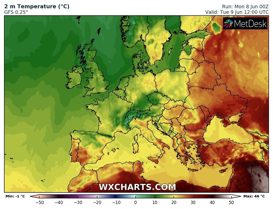 У Києві завтра, 9 червня, буде сухо і жарко, близько 30 градусів. Увечері існує ймовірність локального грозового дощу.