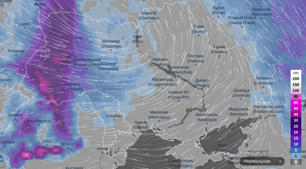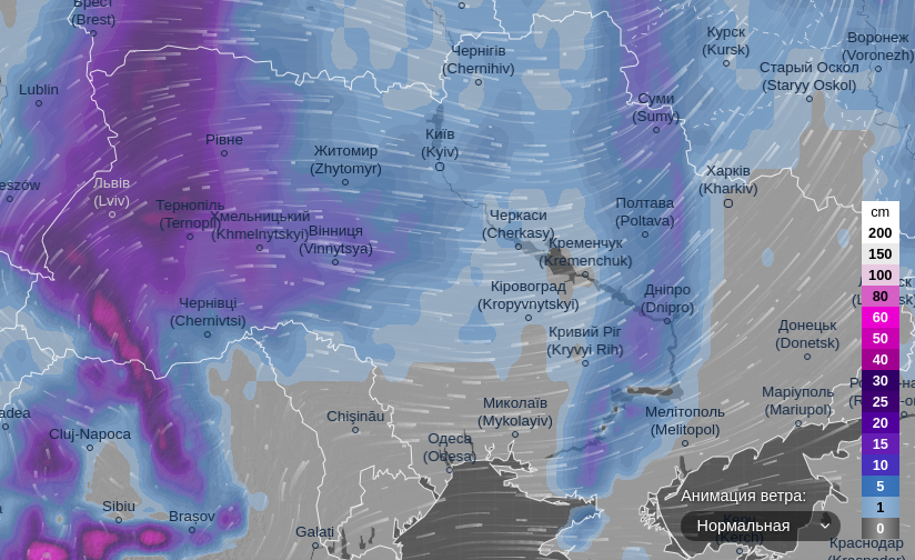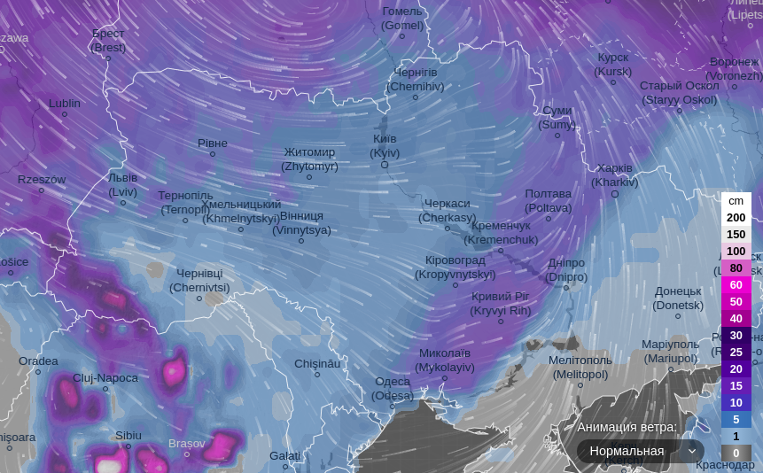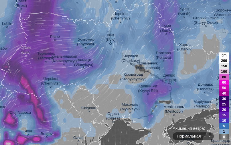 Про це свідчать дані ресурсу ventusky.