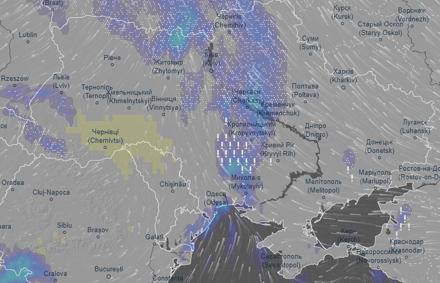 Увечері в Україну із заходу завітають крижані дощі й опади у вигляді снігу з дощем. Особливо небезпечно буде на крайньому заході країні через замерзання дощу. Мешканці деяких районів Вінничини, Житомирщини й Миколаївщини побачать сніг.