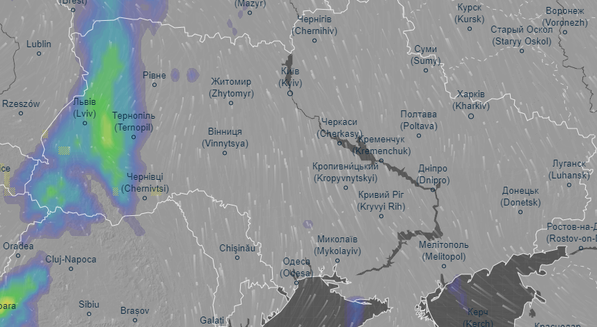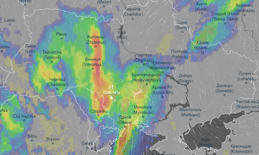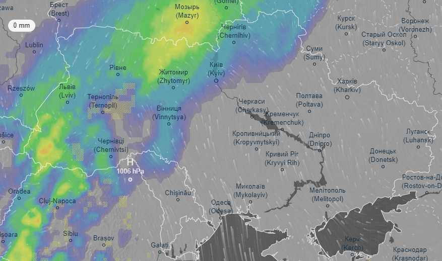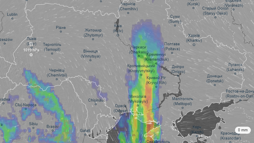 Про це свідчать дані на сайті моніторингу погоди Ventusky.