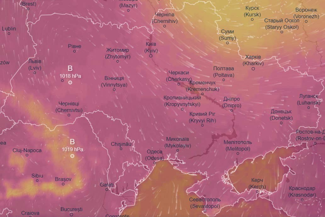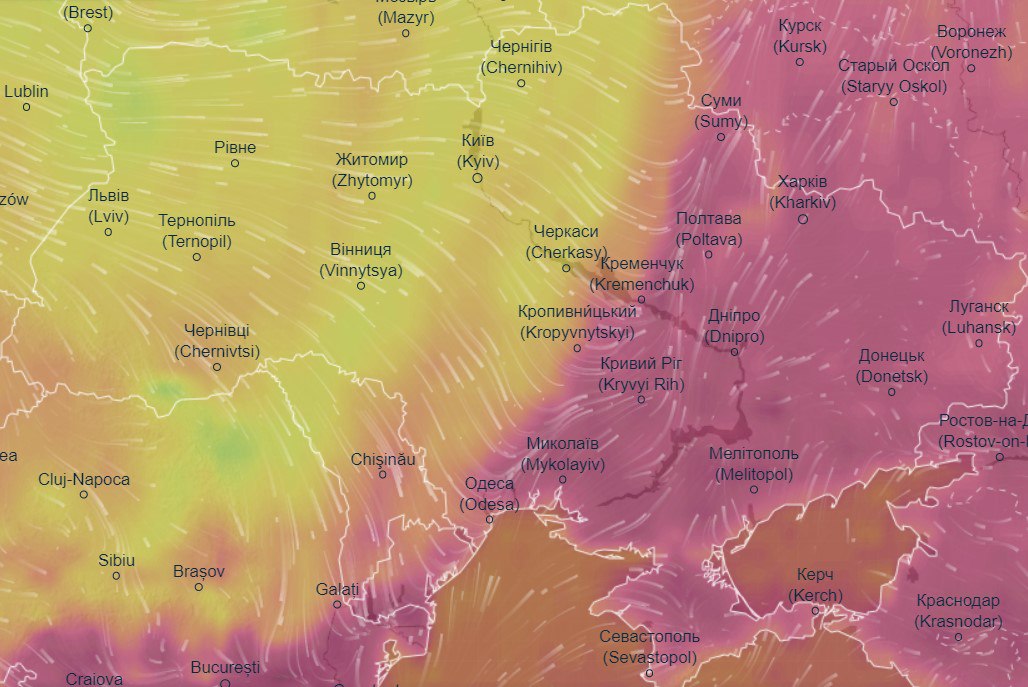 Про це повідомляють в Ventusky.