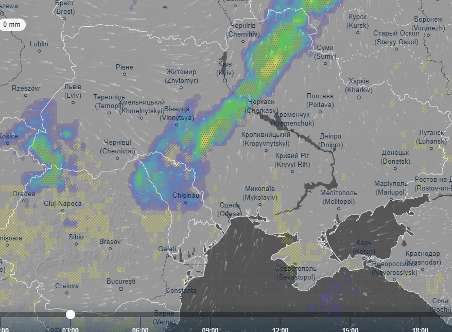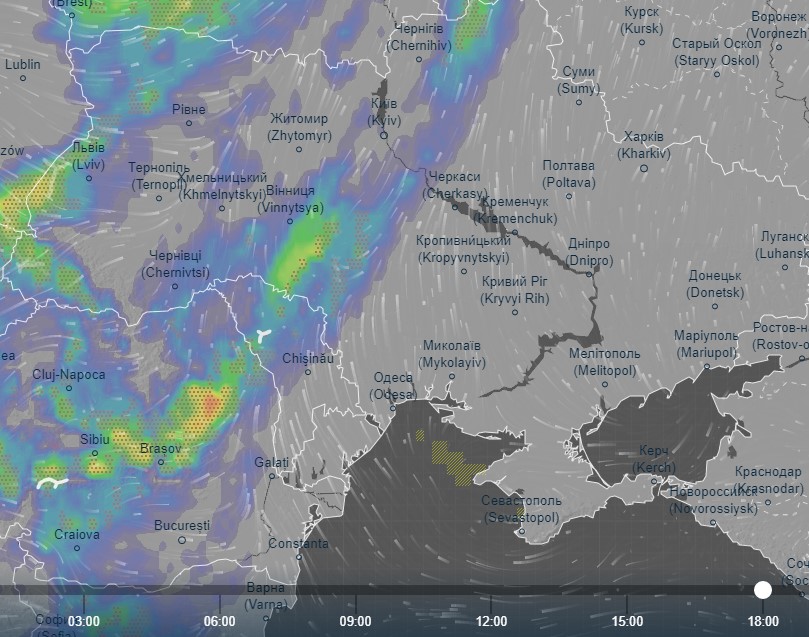 Про це свідчать дані із метеорологічного сайту Ventusky.