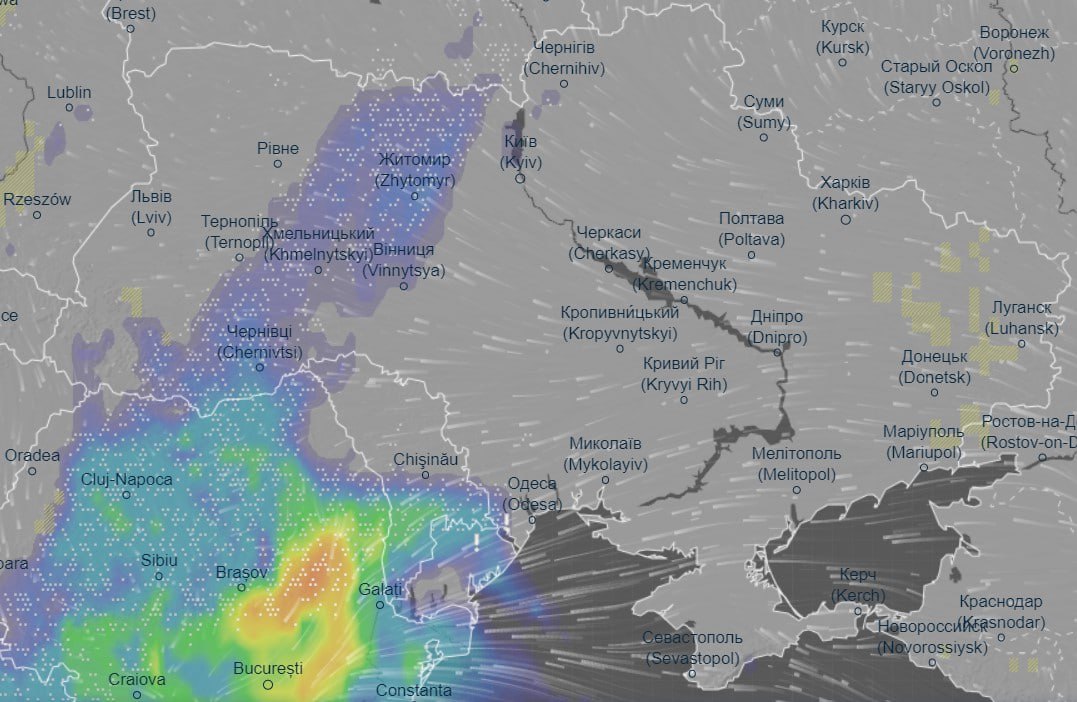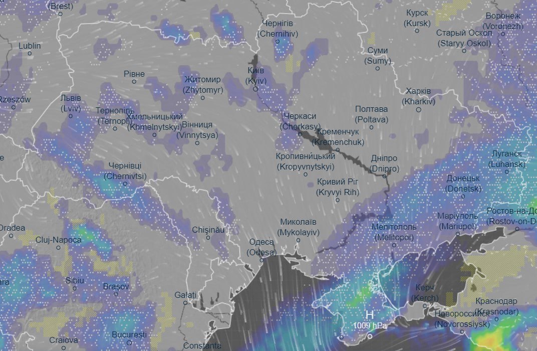 Про це свідчить інформація погодного порталу Ventusky.
