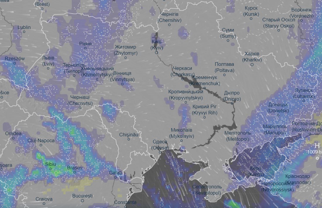 Вдень опади перемістяться трохи західніше, охопивши Рівненщину, Тернопільщину, Львівщину, Чернівецьку та Закарпатську області.