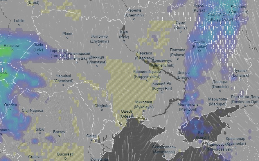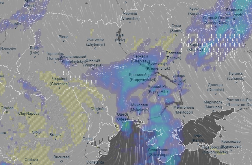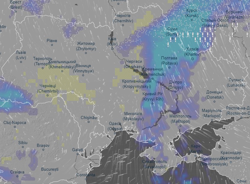 Про це повідомляє "Апостроф" з посиланням на дані радару ventusky.com.