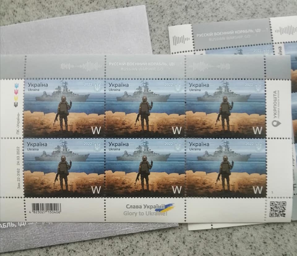 У вівторок, 12 квітня, "Укрпошта" ввела в обіг поштові марки "Русскій воєнний корабль, іді на…!". Це буде перша марка, випущена в умовах воєнного стану.