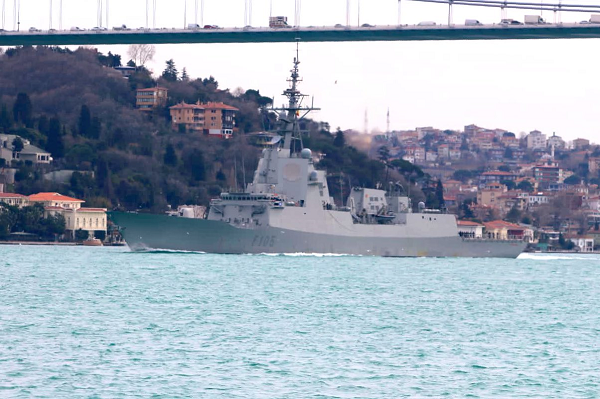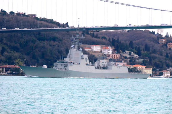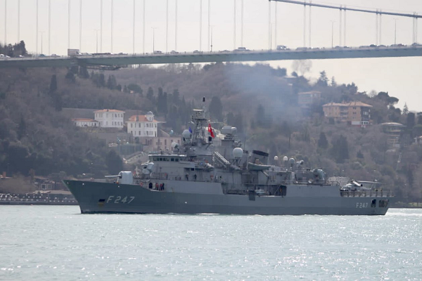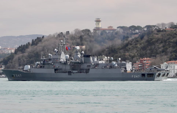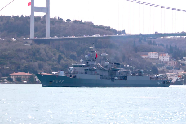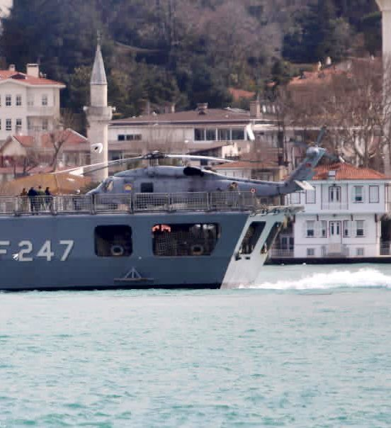 Першим протоку Босфор перетнув фрегат турецьких ВМС MEKO200TN IIA/B Barbaros TCG Kemalreis F247 з вертольотом Sikorsky Seahawk на борту.