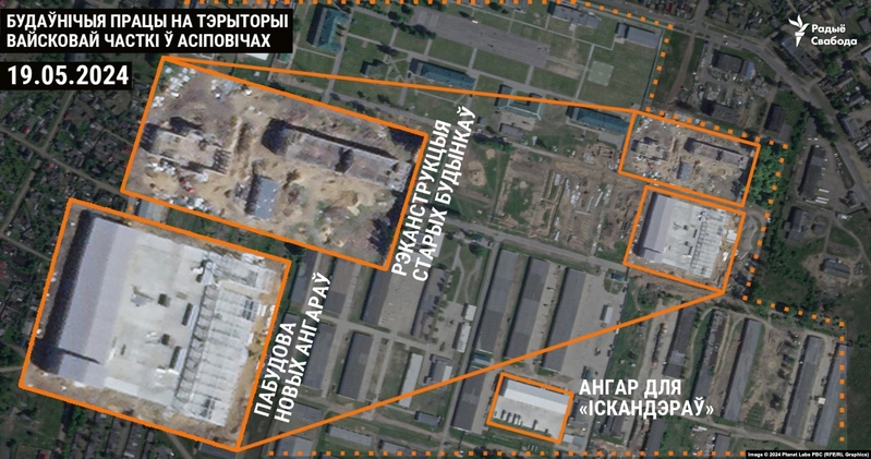 На території військової частини в Осиповичах Могильовської області Білорусі будують два нових ангари, що за зовнішнім виглядом та розмірами схожі на укриття для оперативно-тактичних ракетних комплексів "Іскандер". Повідомляють, що триває реконструкція занедбаної казарми та адміністративної будівлі.