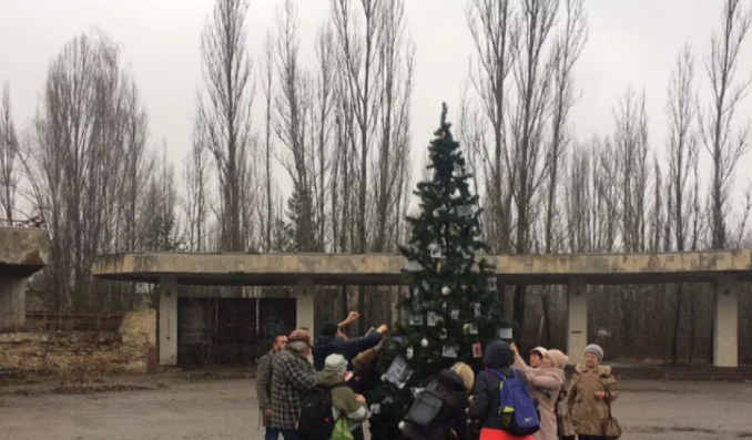 У покинутому після аварії на Чорнобильській АЕС місті Прип'яті встановили новорічну ялинку.