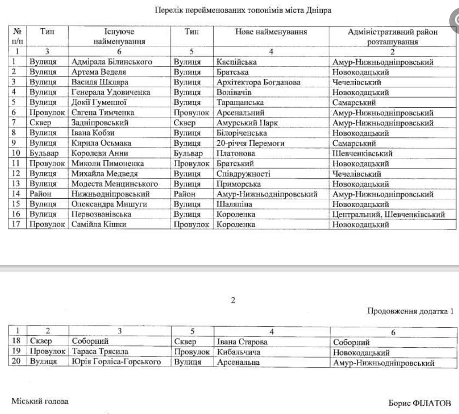 Повний список вулиць, яким повернули старі назви:
