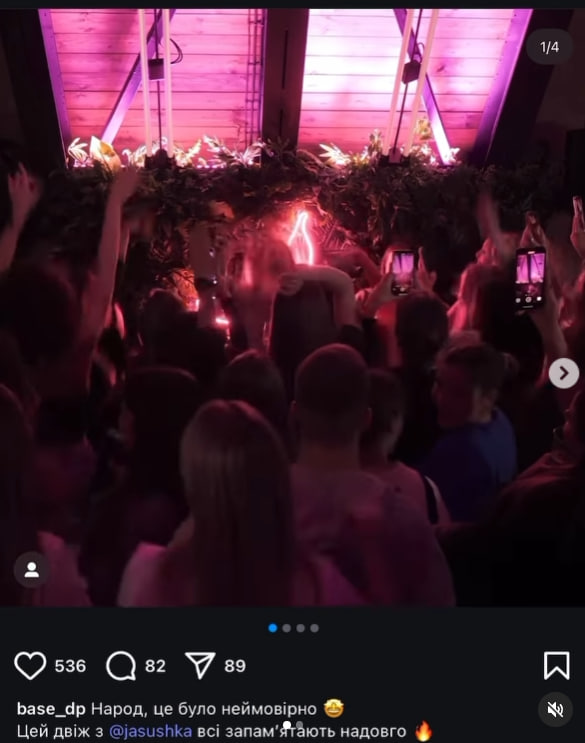 "Танцювали.Було "весело". На сцені - російськомовна діджейка з Луганська, блогерка, яка приїздить винятково на запрошення. На гроші. Я знаю, що багато артистів у ці дні перенесли свої концерти, виступи, інтеграції - з поваги, з гідності, з розуміння моменту. Але BASE цього не зробив. BASE - частина великої мережі (Dollar, Mammy). Бізнес, який живе завдяки людям, завдяки нації, що воює, що платить, що втрачає. І в той самий день, коли Україна оплакувала вбитих дітей, вони влаштували ніч танців", - сказала офіцерка.