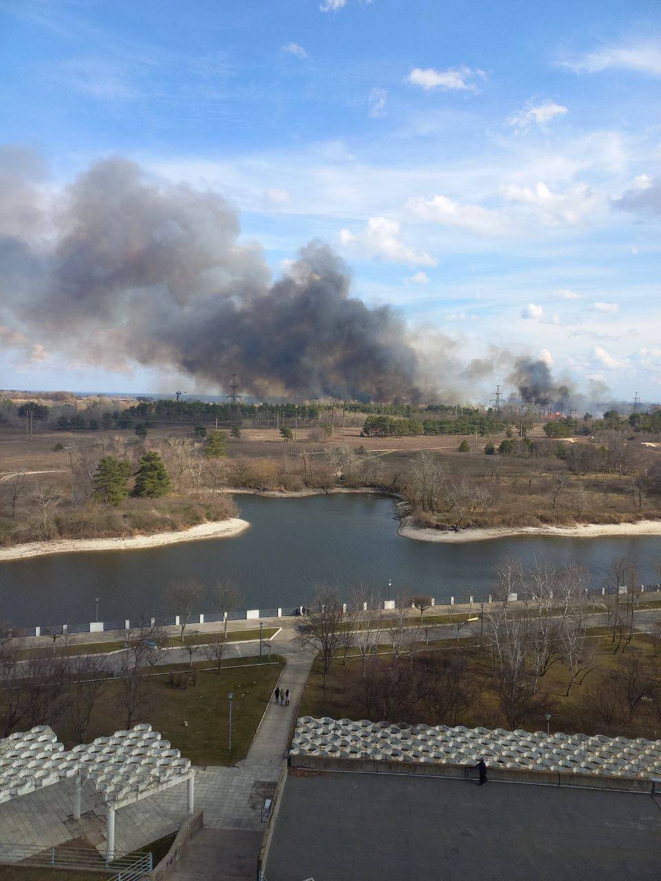 Вогонь шириться вздовж лінії електропередач, що запитують насосну станцію та місто. На місце прибули екстрені служби, загрози для ЗАЕС немає.