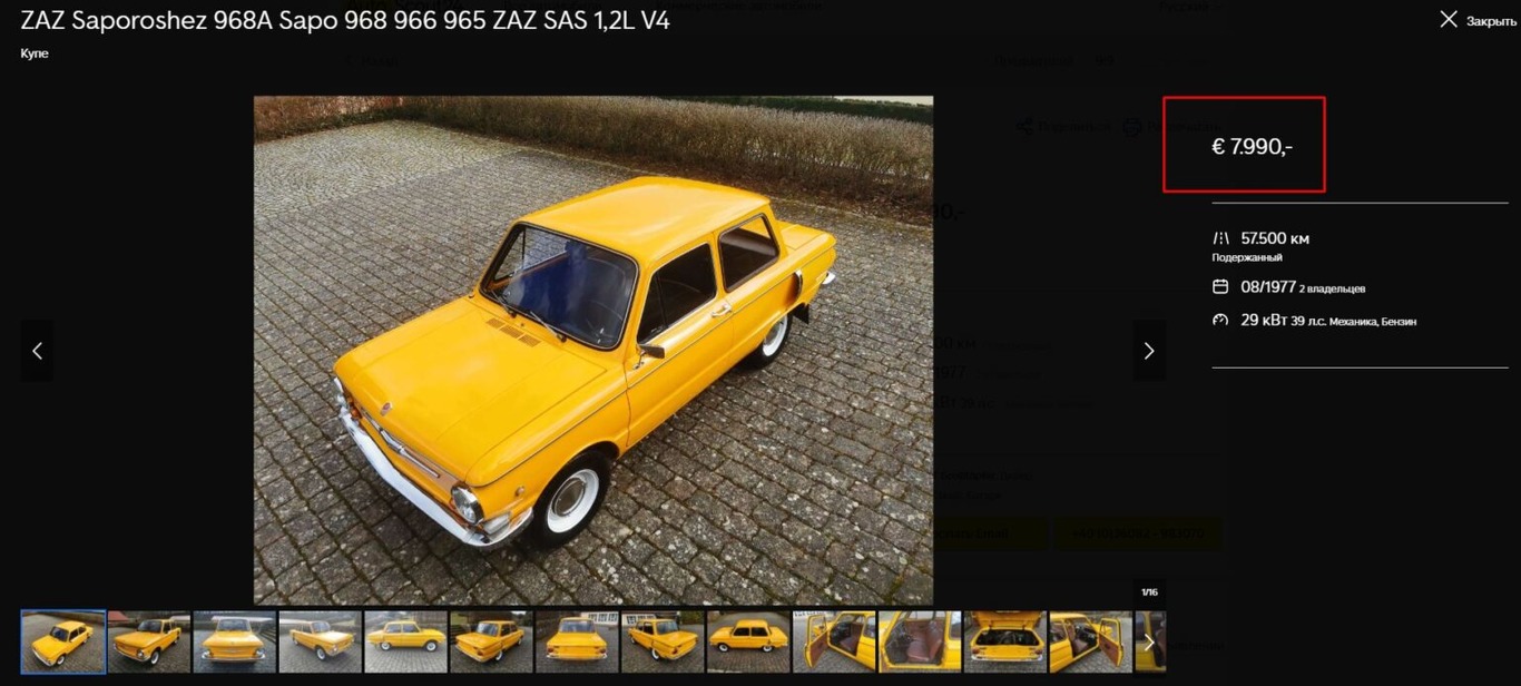 У Німеччині вінтажний "Запорожець" 1977 року випуску продають за 7990 євро.