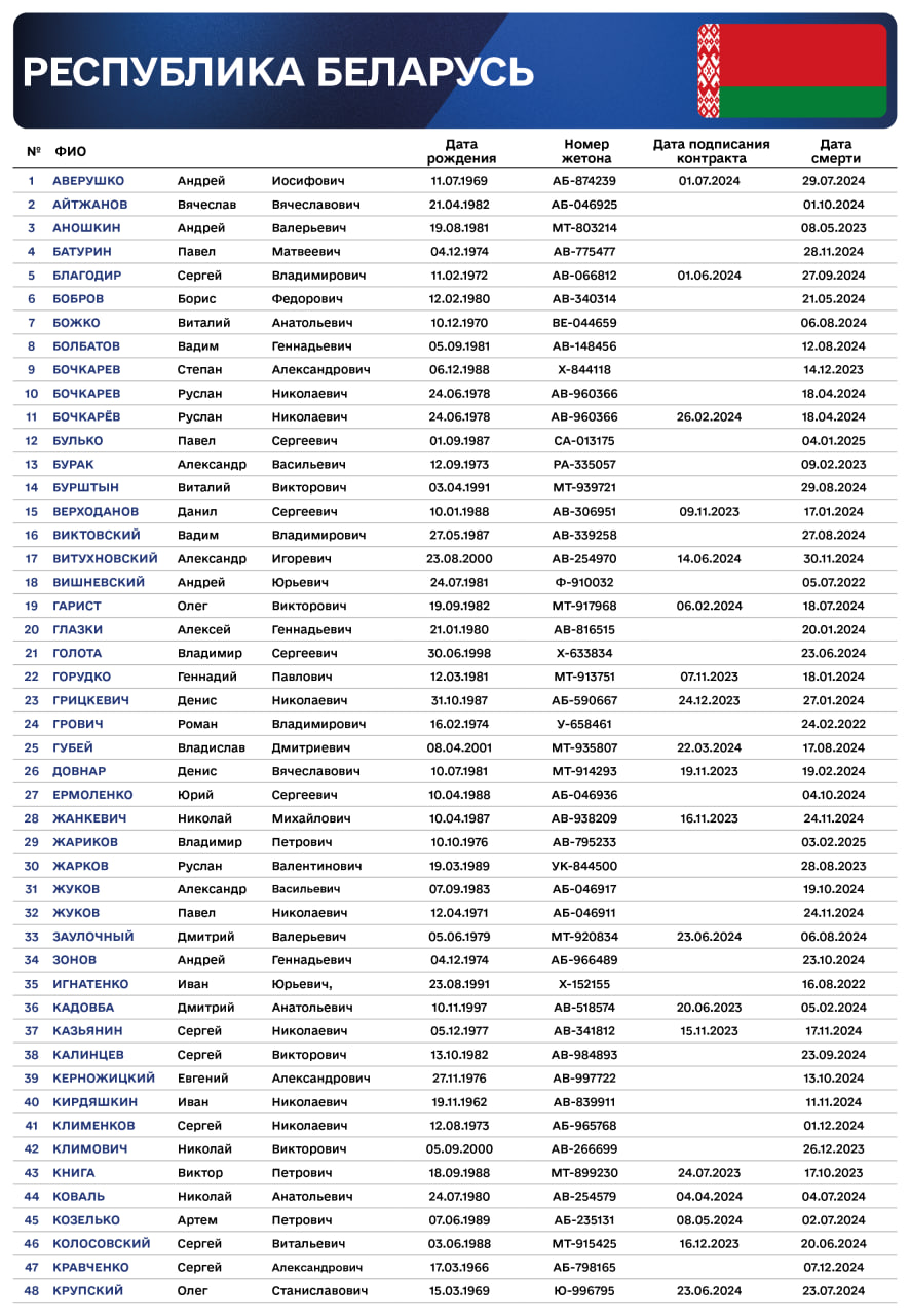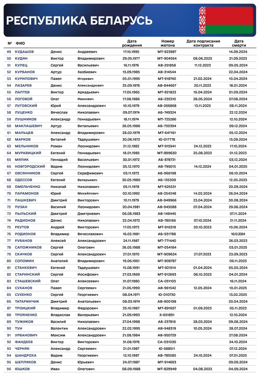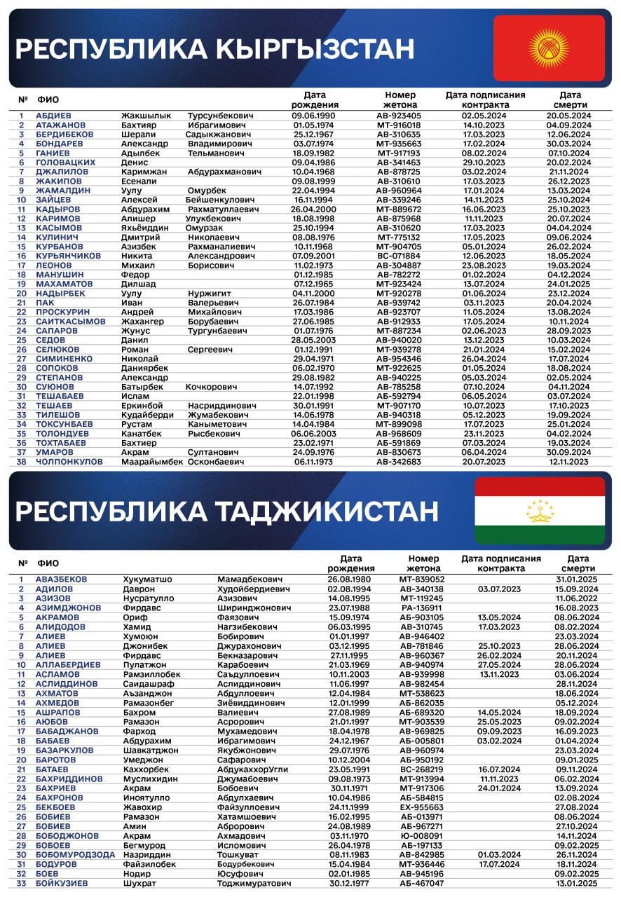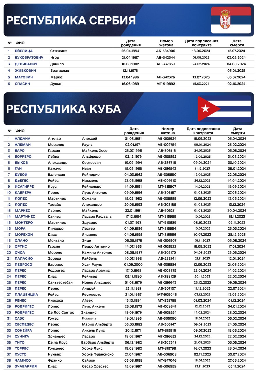 Там розповіли, що з квітня, в рамках циклу публікацій про іноземних найманців, які РФ використовує у війні проти України, йдеться про 5204 імен. При цьому - це ще неповний список усіх найманців, про яких відомо. Це списки, зокрема, про найманців з Білорусі, Киргизстану, Таджикистану, Казахстану, Узбекистану, Туркменістану, Сирії та Куби.