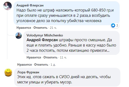 Коментарі під дописом на сторінці Патрульної поліції Харківської області