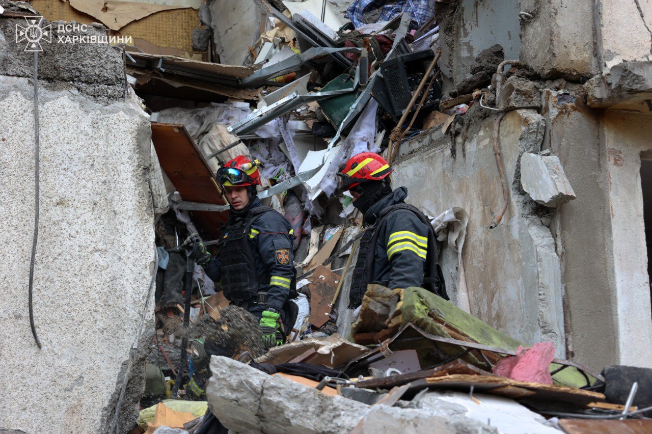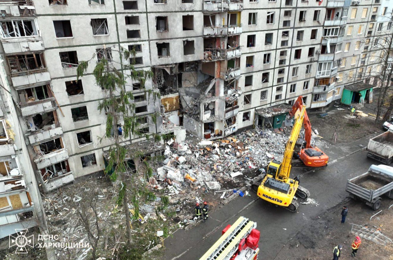 У Харкові працівники Державної служби з надзвичайних ситуацій завершили розбір завалів пошкодженої російським ударом багатоповерхівки, який тривав майже добу.