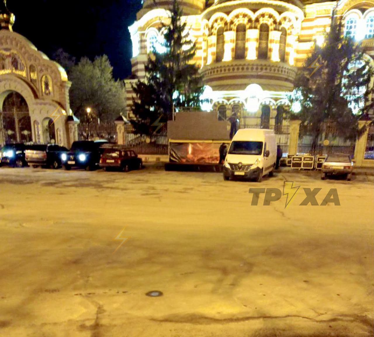 Біля собору встановили великий екран, на якому транслюватимуть богослужіння.
