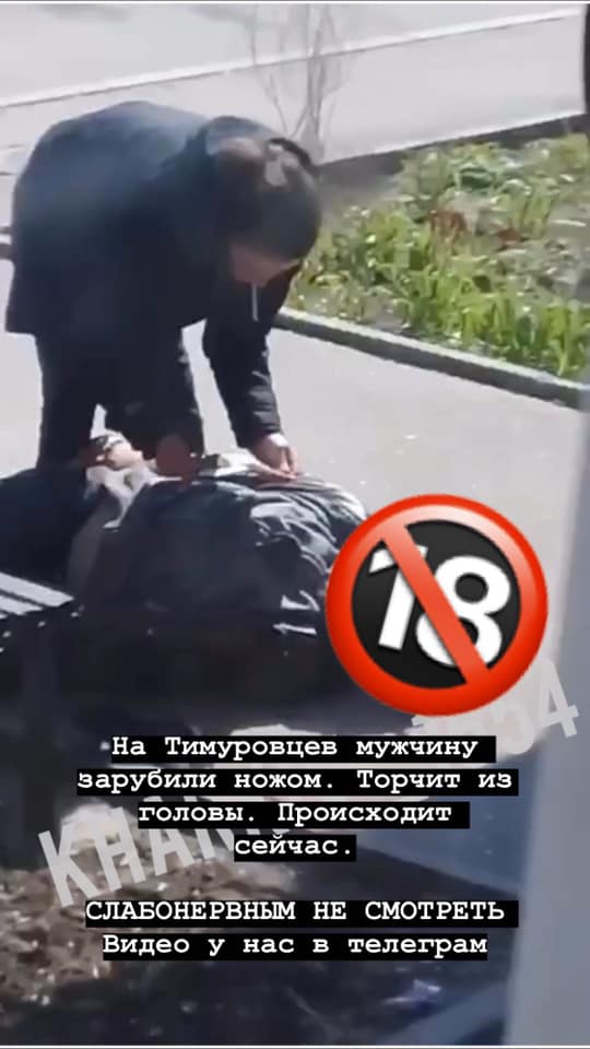На кадрах видно, як невідомий оглядає кишені жертви, залишає ніж в голові у чоловіка, і тікає.